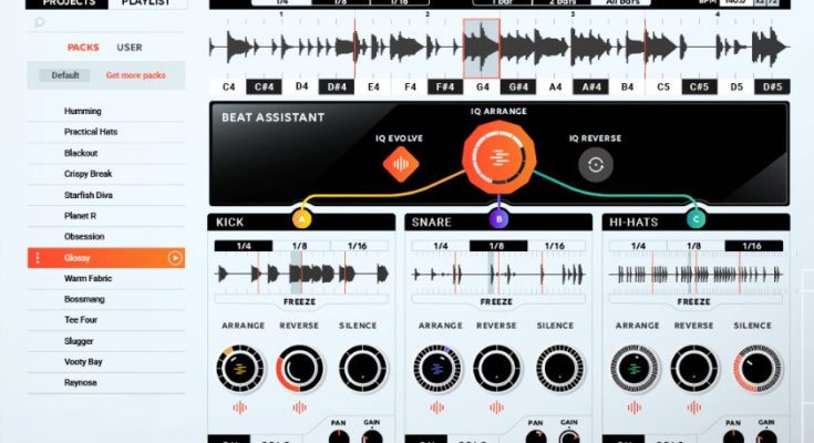 Like most Accusonus developments, Rhythmiq offers a simple and intuitive interface. At the heart of the plugin is the Beat Assistant virtual assistant, which operates in three modes – IQ Evolve, IQ Arrange and IQ Reverse. The modes work in parallel, and users can independently choose which mode sound will prevail in the final signal. Each mode is associated with its own audio file, which must be selected before starting work.