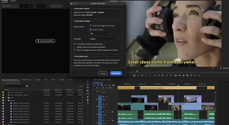 With the Adobe Speech to Text add-in in Premiere Pro, you can automatically generate transcripts of video dialogue and add captions to your videos to improve accessibility and engage viewers.