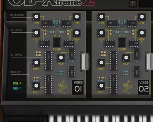 What happens if you take 8 monophonic synthesizers and use them together? Huge analog sound! This sound is the result of small imperfections between each voice card, and due to the (incorrect) behavior of some electronic components, parts of the original circuit (OB-X in particular) caused all sorts of distortion occurring at different stages from filter to VCA and also in the output stage OB-Xtreme paid particular attention to the latter, with an emphasis on “Growl”.