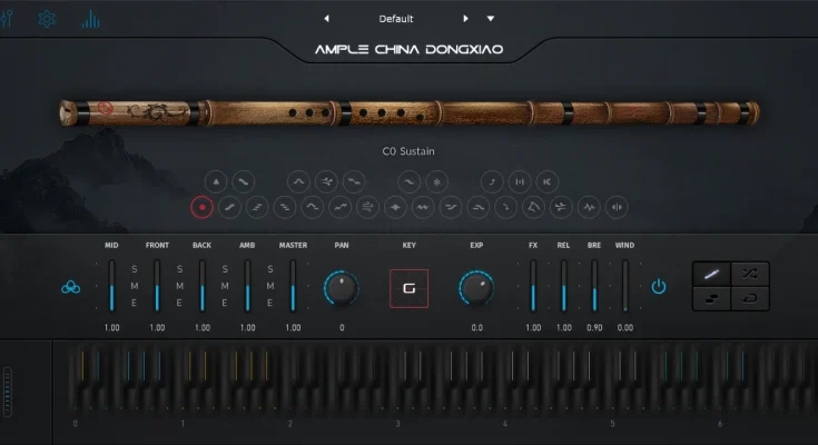 Dongxiao is a Chinese bamboo longitudinal flute. Ample China Dongxiao (ACDX) is based on the latest Woodwind Sample Engine and contains head and body articulations, effect sounds, and a select collection of improvised phrases.