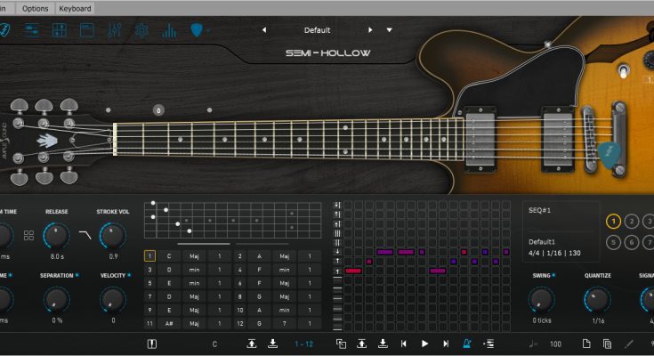 The Ample Guitar Semi Hollow is modeled after a Gibson ES 335 half-hollow body guitar pickup with fingerstyle technique and sounds warm and soft. Suitable for Jazz Fusion and Blues genres.