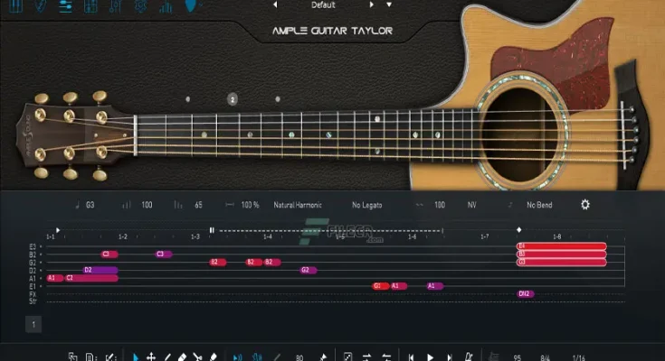 Ample Sound T is a virtual guitar based on the Taylor 714CE acoustic guitar. Ample Sound T III contains two sample libraries, Finger Library and Pick Library, with a total volume of over 7 GB. The instrument has natural sustain and resonant guitar sounds, without looping. AGT also includes several playing techniques, including sliding up and down, palm muting, natural harmonics, legato with different lengths, and many others.