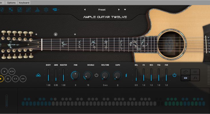 Ample Guitar Twelve III is a virtual acoustic guitar that brings the sound of the Taylor 956 CE 12-string guitar to your studio. Ample Guitar Twelve contains two sample libraries Finger Library and Pick Library with a total volume of over 8 GB.