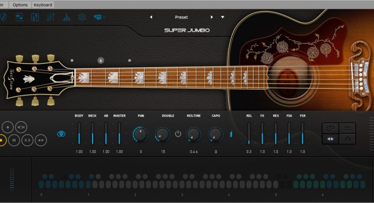 Ample Guitar SJ is a virtual acoustic guitar that brings the sound of the Gibson SJ-200 Vintage Custom Shop acoustic guitar to your studio.
