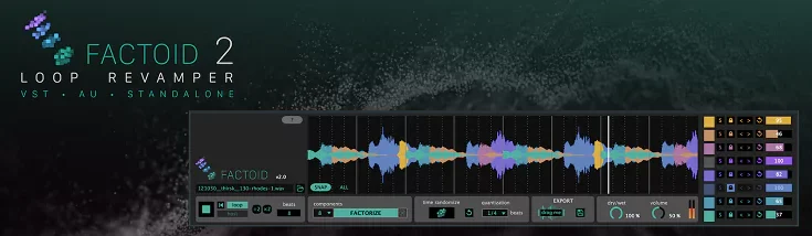 Create new drum patterns on the fly, turn melodies into textures, remix and randomize full mixes, and experiment with any sounds! Factoid version 2 is a complete redesign of the original Max For Live device in the form of a VST/AU plugin and a separate application. It includes new features such as individual component control and audio export.