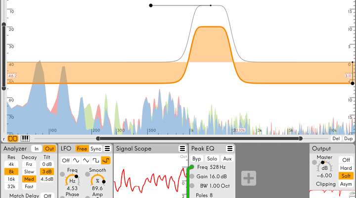 apulSoft apQualizr2 is a multi-band equalizer with built-in frequency analyzer and modular effects system elements. It includes graphical editing of top-notch filters and modular modulation of various filter parameters. It can be used for general EQ and can also create a variety of dynamic and modulation effects thanks to the dynamics and LFO modules.