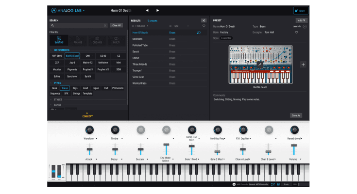 Whether you write, play, or record, the elegant Analog Lab browser makes it easy to dive into the depths of this vast library for the sound gold you need.