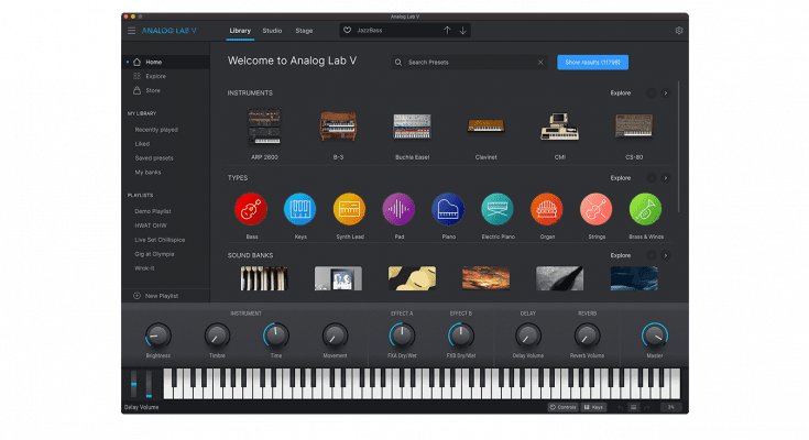 Analog Lab gives you easy access to 6500+ of the hottest presets from our award-winning V Collection. Contains the sounds of all 21 authentically modeled keyboards, combining impressive sound with exceptional ease of use and amazing features.