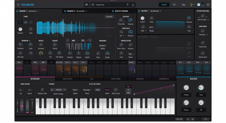 Versatile software synthesizer. A very powerful wavetable virtual analog synthesizer is Pigments and will change the way you make music. Turning the spark of imagination into sound is the most important, exciting part of making music. Pigments makes this process natural, intuitive and vibrant.