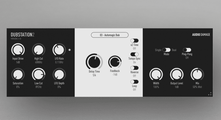 Audio Damage Dubstation is an emulation of vintage delay effects. This plugin realistically recreates the delay effect of old analog processors. It is quite simple to set up and has the most necessary parameters.