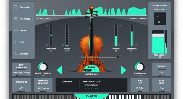 Ideal for multi-vector expressive acoustic instruments such as woodwinds, brass and bowed strings, the SWAM engine is currently available in 3 different versions: SWAM-B, SWAM-W and SWAM-S for modeling brass, woodwinds and bowed strings.