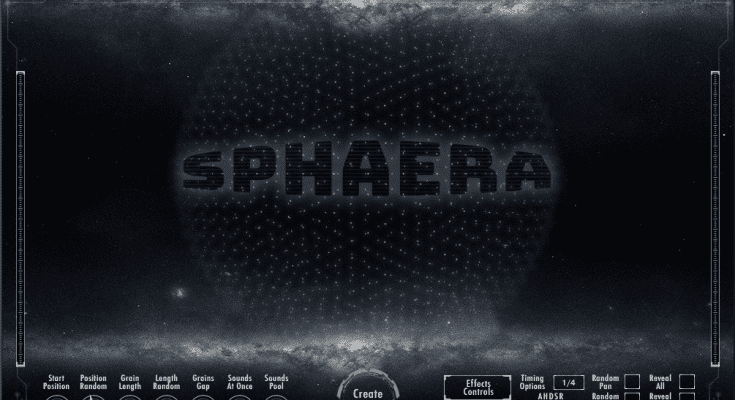 Sphaera will play very long audio files starting from a given sample position, which can be randomized, just like a granular sampler would do. But each time the play mode is engaged, Sphaera switches to a different audio recording, generating beautiful cascades of sounds.