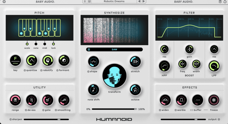 At its most extreme, Humanoid will turn the voice completely into a synth, while moderate settings will add a subtle electronic sheen to the vocal mix.