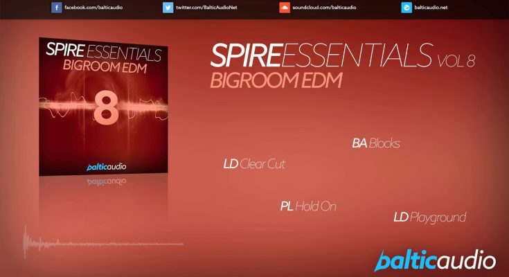 Spire Essentials 8: Bigroom EDM by Baltic Audio is a set of Spire presets inspired by the sound of modern Bigroom EDM.