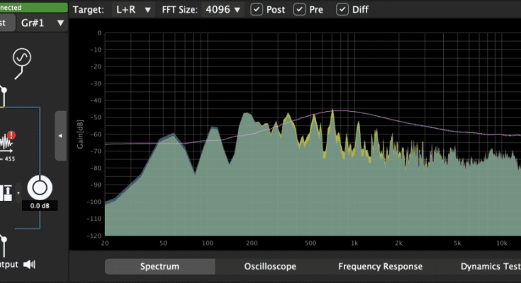 - Spectrum Analyzer: Compare the frequency domain characteristics between bypassed and processed paths to determine the added effect of plugins.