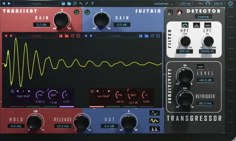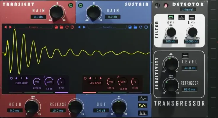 With Transgressor, you get unprecedented control over your sound, with the ability to EQ transients and sustained tonal components 100% independently .