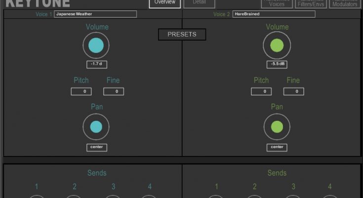 Setting up and using new sounds in KeyTone couldn’t be simpler – we spent a lot of time refining our voice randomization engine to such an extent that new and interesting sounds are just a click away. We added a completely new “Overview” tab to quickly and easily access the most important controls, but we kept all the controls in KeyTone with “classic” synthesis controls, such as envelopes and filters, to create modern, innovative and original sounds quickly and efficiently. You can find them on the Detail tab. In addition to these controls, we have provided over 200 snapshots, full instrument sounds, as well as over 100 voice presets, 30 gate presets and 50 ARP presets.