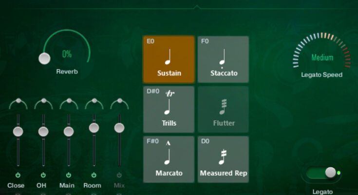 However, the usual deferred legato still exists, and it has also been improved to make it more realistic and easier to create flowing, human phrases than ever before. We’ve renamed this legato mode to Expressive, which you will see in the main GUI. Both of these modes can be selected using the velocity sensitive rocker switch function, which defaults to C0. Press it at a speed of 0-64 for low latency, or 65-127 for expressive.