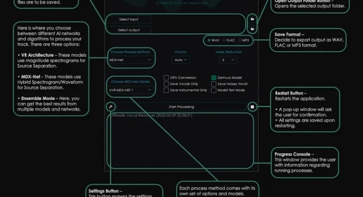 The program is a wrapper for neural network models designed to work with a mix and extract audio tracks from it. The program extracts vocals from the mix, and also divides the mix into tracks (drum section, bass, keys, vocals, guitar, etc.). Multi-track splitting is available on Demucs models!