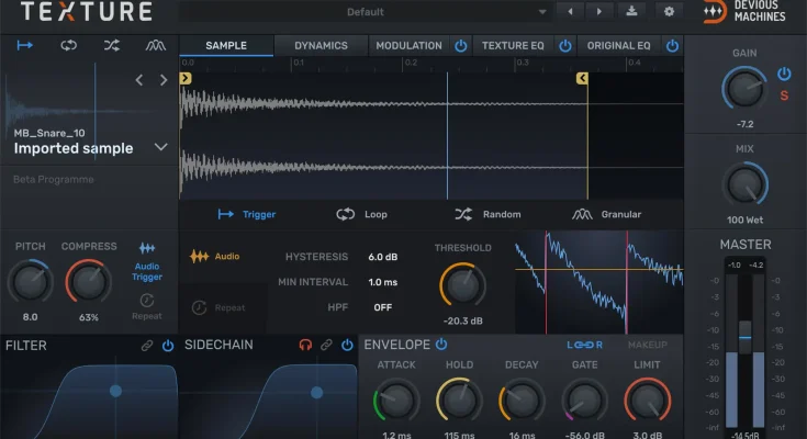 Part FX plug-in, part-synth; Texture synthesises new layers which track the dynamics of your sound. Want to “glue” your hi-hat’s transients by adding dynamic filtered noise? Or how about beefing up that kick drum by automatically adding a low sine wave? Texture makes this easy, intuitive, and fast.