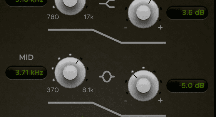 The EQ section provides a parametric 4-band EQ with adjustable filter curves that are modeled on a hardware model. In addition, there are high and low pass filters. The first has an additional “convex” function. This creates a little more pressure and shock in the low frequency range.