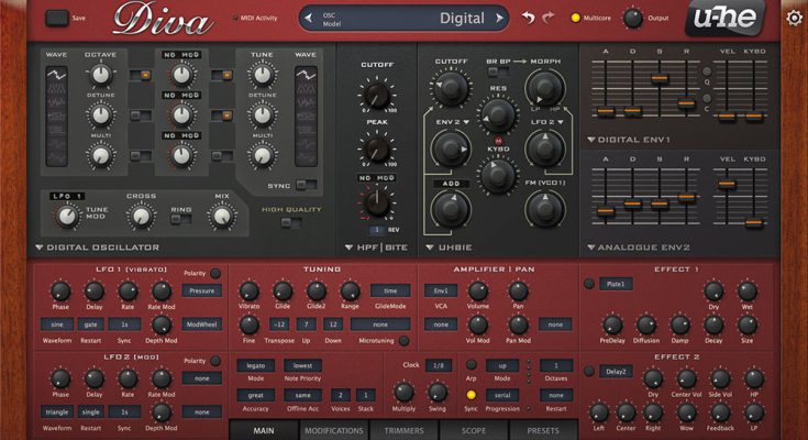 Diva is the first native software synthesizer to use real-time techniques from industrial circuit simulators (like PSpice).