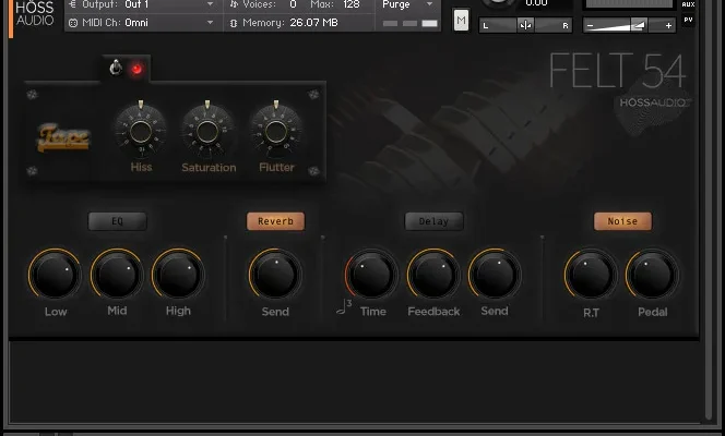 Felt 54 is a felt piano with a lot of character. This is not your average bright and harmonically complex piano. Sampled from a 1975 Yamaha U3 felt piano, modified to make the sound cleaner while maintaining harmonic richness. A