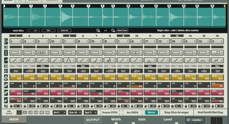 Virtual slicer + step sequencer + effects chain. HY-Slicer is a sample slicer and step sequencer in one plugin. You can cut the loaded samples into 32 pieces and switch these pieces with the internal step sequencer. You can set the slice pointer, disable / enable, division, play shape, on / off reverse, pitch, attack, gate and level.