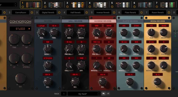 Ambience, ConvoRoom, Digital Reverb, Hall Reverb, Inverse Reverb, Plate Reverb, Room Reverb, Spring Reverb, Stereo Imager.