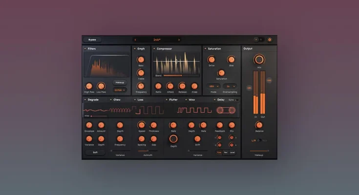Tape Sculptor accurately captures the details of tape recorder behavior to an astonishing degree. Emulate tape aging and wear over time using the Degrade module. Add the sound of a crinkled or twisted tape using the Chew module. Use the Loss module to simulate the unique signal loss pattern of a tape recorder. Add pitch bends using Wow and Flutter modules.