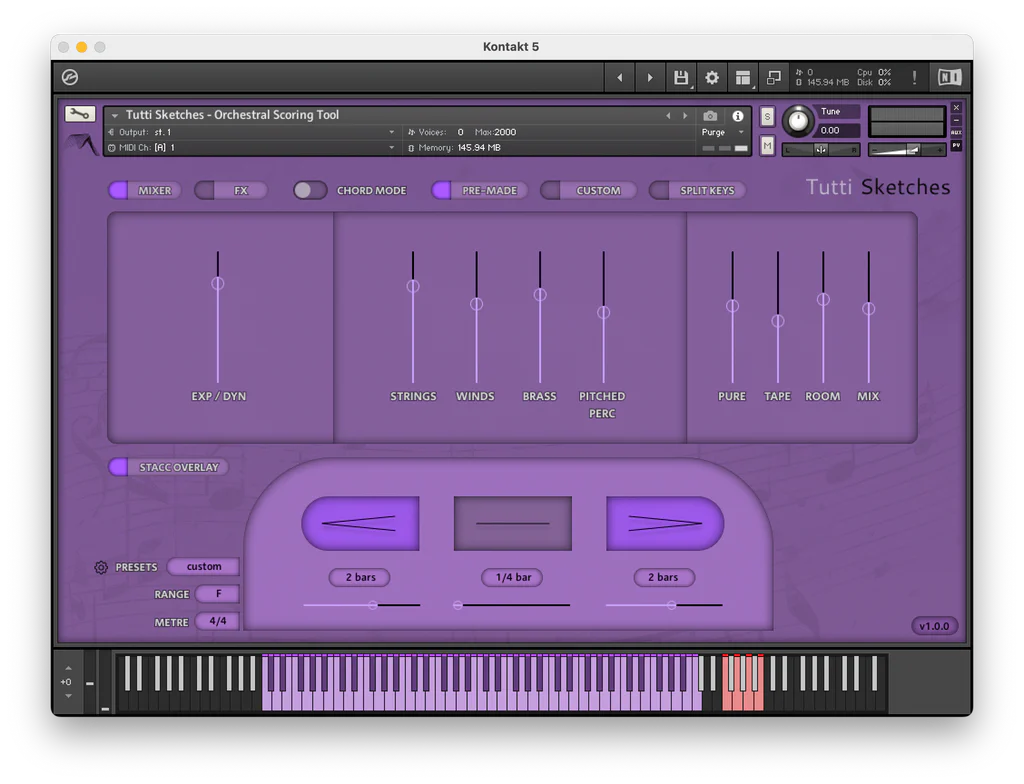 Important note: TUTTI SKETCHES requires the FULL version of Kontakt 5/6/7 or higher. Do not purchase it if you only have Kontakt Player.