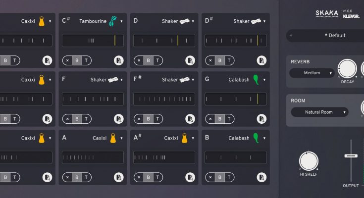 The Klevgrand Skaka virtual shaker is based on samples from a real percussion instrument. The plugin offers 12 slots for creating your own percussion section and eight types of shakers. The user’s choice is offered: