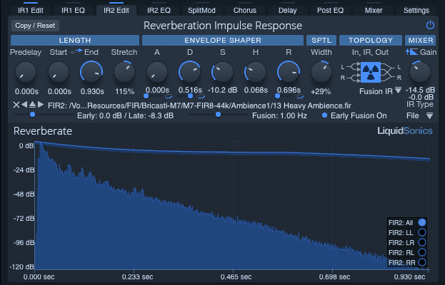 Deeper Fusion-IR Editing: New in Reverberate 3 is the ability to independently adjust the late reverb pre-delay without compromising the integrity of the sampled reflections.