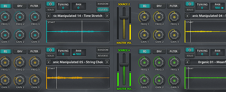 Vektor allows you to transform and manipulate audio sampled sources in several ways with a unique set of parameters, making it easy to transform any idea in your imagination into sound. From his unique “Filter Movement” and “Source Movement” manipulations to innovative drag and drop capabilities. Each of the four audio sources can be configured independently with a variety of parameters, making the possibilities endless.