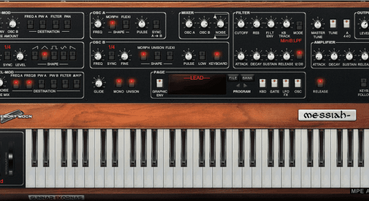 Memorymoon Messiah is a synthesizer whose main distinguishing feature is a low CPU load. The synthesizer has 3 innovative oscillators: a Morph oscillator with 4 waveforms, a Unison oscillator with 7 voices (you can put this oscillator in 5 voice unions to achieve 35 voices), and a Flexi oscillator, which consists of 2 separate waves that can perform PWM (Pulse Width Modulation – Pulse Width Modulation), Ring mod. and phase distortion of the signal with a very low CPU load.