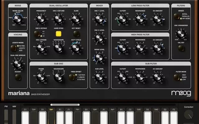 Mariana’s intuitive user interface is designed for a fast and efficient workflow, while being fully equipped with three LFOs, three envelopes, and two random effects generators per layer. Combined with a creative and extremely deep modulation editor, Mariana excels at deep sound design and sounds that dynamically change over time. Virtually every Mariana parameter can be modulated internally with MIDI, MPE, and virtual CVs to create an interconnected ecosystem right within your DAW. With a streamlined, customizable user interface, an expressive on-screen keyboard for iPad and a separate desktop version, and seamless integration into any DAW (digital audio workstation), Mariana is the most affordable way to add Moog’s signature bass sound to your work.