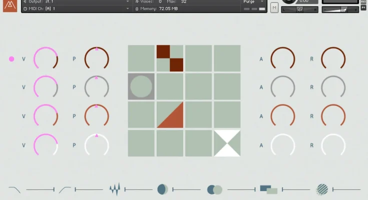 - Front panel controls for more immediate aspects: volume, envelopes, effects sends