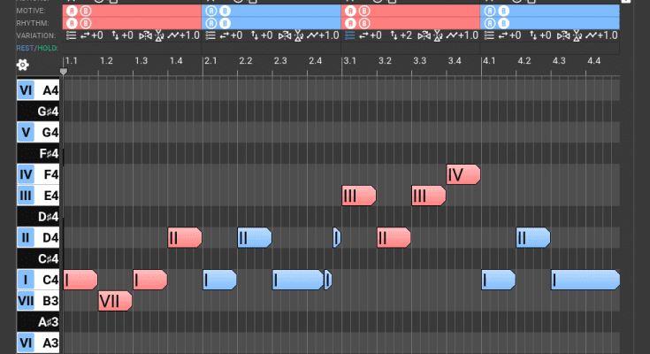 Melodya is an advanced motif editor and melody generator that is easy to use, but at the same time offers many detailed settings for deeper control … He not only creates new melodies, but can also modify existing ones in various ways. The created melody can be completely edited.