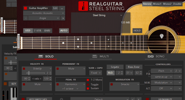 RealGuitar 6 is a combination of two instruments: Classic – all of our original guitar models with many new features, and Steel String – the debut of a new set of guitar samples with five patches and three settings for each.