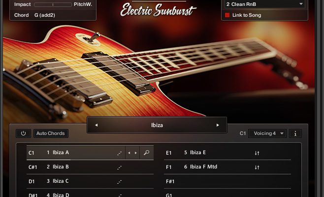 ELECTRIC SUNBURST DELUXE gives you two KONTAKT instruments to create complete, authentic electric guitar parts. The pattern-based tool allows you to instantly generate riffs, rhythm patterns and arpeggios simply by playing a chord on your MIDI controller. The included melody tool allows you to combine your own, freely playable melodies with built-in patterns. Smooth transitions between melodies and patterns help you create unique, compelling electric guitar parts for any piece.