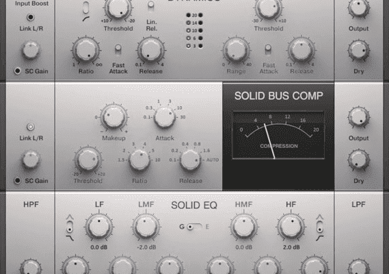 Get high-quality studio sound from the comfort of your own virtual effects rack with SOLID MIX SERIES: SOLID BUS COMP, SOLID EQ and SOLID DYNAMICS.