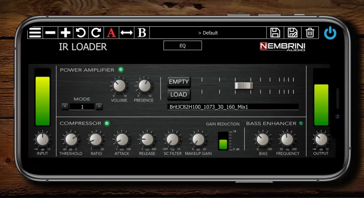 IR Loader: The Nembrini Audio IR Loader plugin is an innovative and complete pulse loader specially designed to load your favorite cabinet IRs. It also lets you manipulate them with instruments tuned for guitar and bass, such as a 6-band parametric EQ and a custom desktop compressor. A built-in custom-designed desktop compressor with a side-chain high-pass filter, a 6-band parametric EQ with graphical implementation and a spectrum analyzer, and a bass booster make the Nembrini Audio IR Loader plugin the perfect tool for controlling and manipulating guitar and bass IR cabinets.