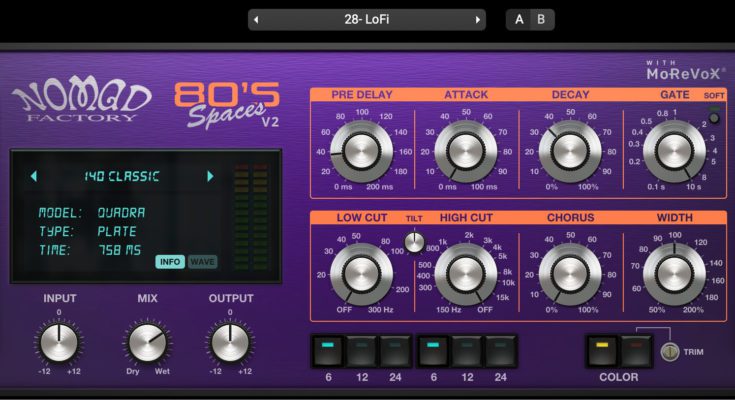Nomad Factory presents Spaces from the 80s in collaboration with MoReVoX; a uniquely designed plugin that captures the essence and spatial realization heard in many of the great records of the era.