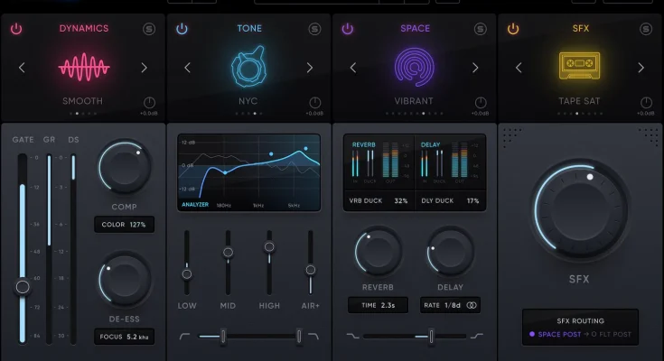 • Separate plug-ins included: Xvox Comp, Xvox DS, Xvox Tone, Xvox Space, Xvox SFX.