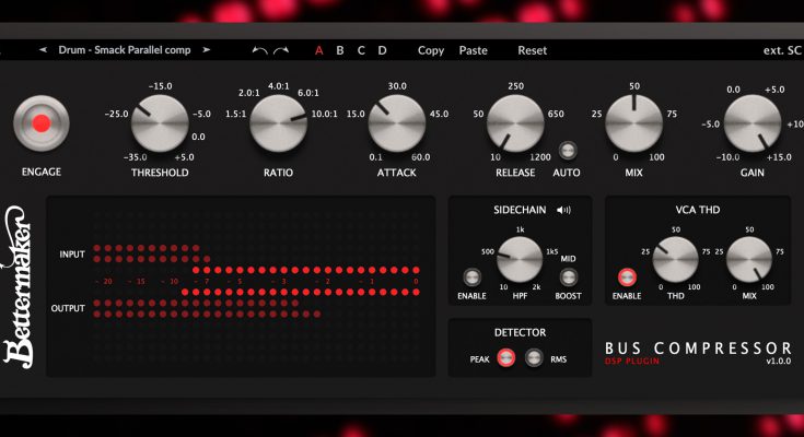The hardware version of the Bettermaker Bus Compressor uses an all-analog path with settings that are saved and recalled digitally, making it widely popular among professional mixing and mastering engineers. While the Bettermaker Bus Compressor plug-in sounds very similar to the hardware, it is a bit more forgiving and surgical, allowing you to de-esse vocals and hi-hats. Additionally, the VCA Total Harmonic Distortion (THD) control creates additional harmonic content, subtly saturating your music.