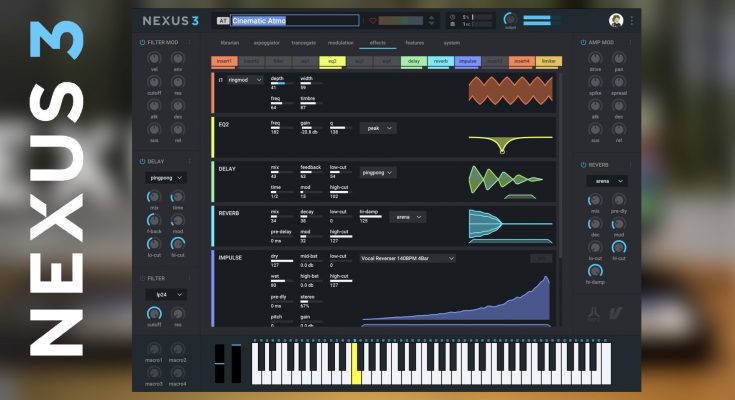 Brand new library. It is large so it can hold all the content available for NEXUS3! It has three columns for easy navigation and displays counters for folders, categories and presets. Colored tags, bookmarks, favorites and dedicated space for custom presets. Easily find what you’re looking for with instant audio preview, search as you type, filter by category and tag, and more.