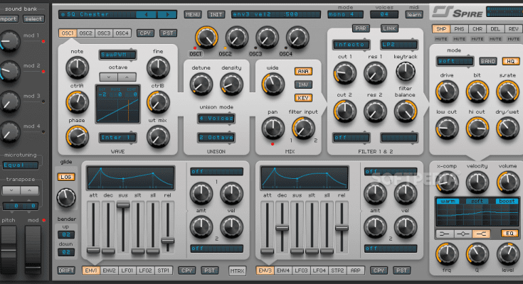 Spire is a software polyphonic synthesizer that combines a powerful sound modulation engine, flexible architecture, and a graphical interface that provides unparalleled usability. Spire is the epitome of the best of both software and hardware synthesizers.