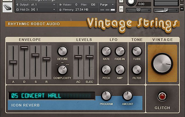 Vintage Strings is perfect for reproducing vintage strings that match a specific musical era. For example, if you want strings to sound like the background of your Motown track, or for creating completely unique string synth patches that don’t imitate existing instruments but still sound historically accurate. If you want strings that sound like a Chamberlin, Mellotron, or Optigan, but with more playability or a more defined sound, this might be for you. Above all, they should be inspiring and easy to use: you can tweak a few knobs and get something cool, or just hit the randomize button and see what the machine throws at you. All without having to lift a baton!