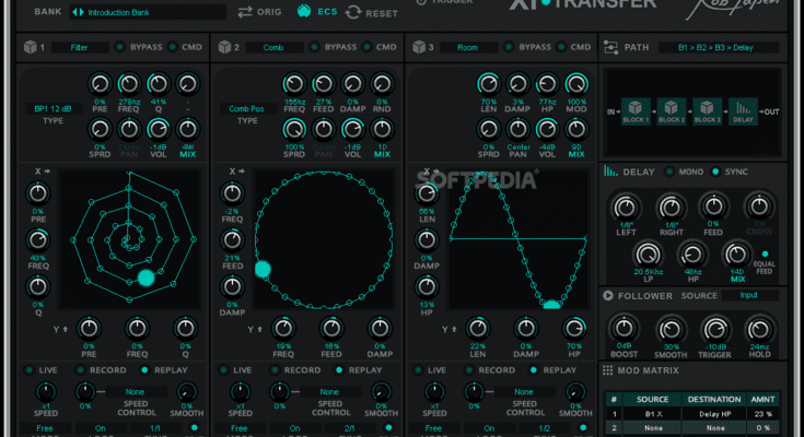 XY-Transfer can be used very flexibly, so very complex types of effects are possible that can lead to unheard of and creative effects. So if you are looking for an advanced filter bank that goes beyond the classic effects processors, this might be an interesting plugin for you. According to the developer, he will turn your audio into something creatively new and unheard of.