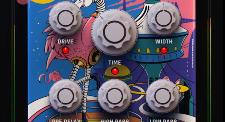 Flamingo Verb is our unique reverb approach. Based on 4 uniquely recorded IRs. Turning the Time knob will take you into the jungle of IR, from a very tight room sound captured in our studio lobby to a nice short LP sound taken from the original 140 LP and then the naughty RE201. Spring sound and finally dreamy long long 480 IR. Also included are a couple of filters + a very nice width button you can play with and a sandy overdrive (gorilla style).
